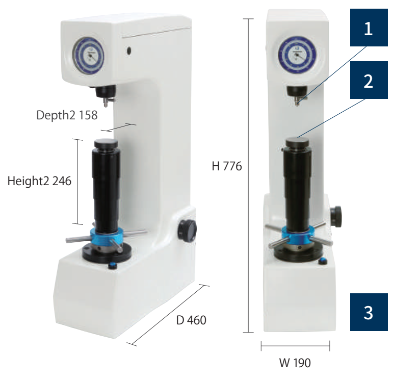 | Standard | JIS Z 2245, JIS B7726, ASTM E18-19, ISO 6508-1, ISO 6508-2 | |||||