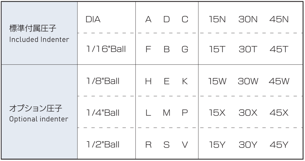 | Optional Indenter | 1/8″ Ball | H E K | 15W 30W 45W | H E K |