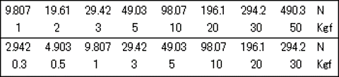S | 2.942 4.903 9.807 29.42 49.03 98.07 196.1 294.2 N | |||